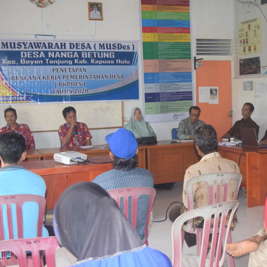 Untuk memahami tentang proses dan tahapan penyusunan Dokumen RKPDes Desa Nanga Betung Tahun 2020 Kecamatan Boyan Tanjung Kabupaten Kapuas Hulu Untuk perlu di sampaikan kepada masyarakat luas dengan telah hadirnya masing - masing perwakilan dari beberapa Dusun
